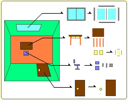 部屋 [ 窓 机 椅子 ドア ]さらにこれを細かく書くと、次のようになります。